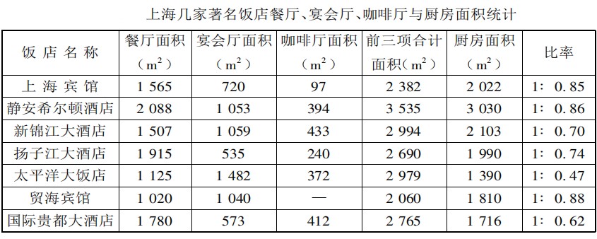 我國(guó)內(nèi)地廚房由于承擔(dān)的加工任務(wù)重,制作工藝復(fù)雜,機(jī)械加工程度低,設(shè)備配套性不高,生產(chǎn)人員多,故廚房與餐廳的面積比例要大些,一般要近70%,隨著餐廳面積的增大,廚房占餐廳面積比例也在縮小。(如圖)