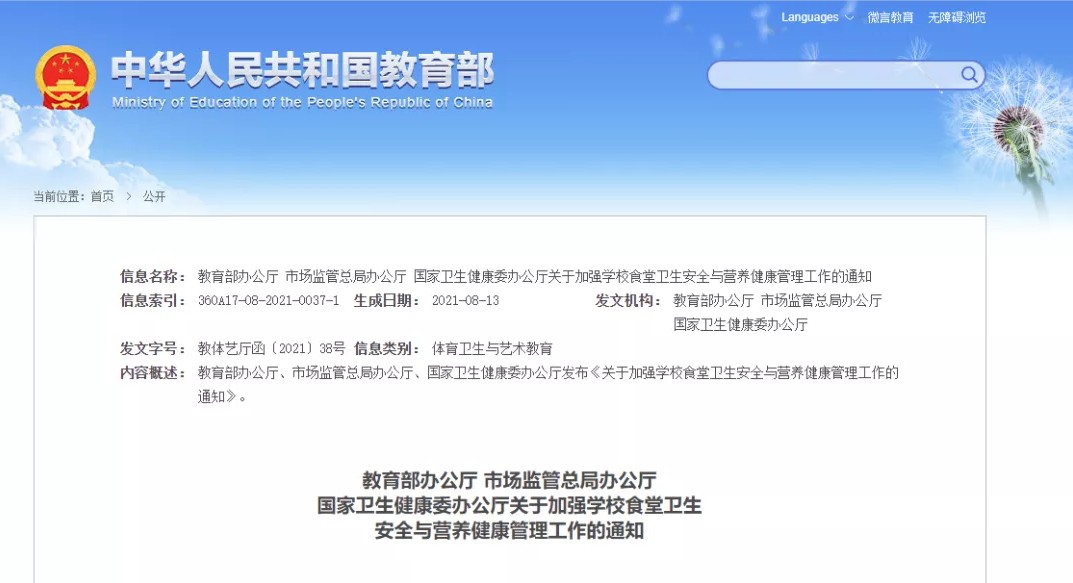 通知要求,學校食品安全關系學生身體健康和生命安全,關系家庭幸福和社會穩(wěn)定。要規(guī)范食堂建設,利用互聯(lián)網(wǎng)等手段實現(xiàn)“明廚亮灶”,學校食堂與有毒有害場所及其他污染源保持規(guī)定的距離,食堂用水應符合國家規(guī)定的生活飲用水衛(wèi)生標準,防蠅防鼠防蟲等設施完好。